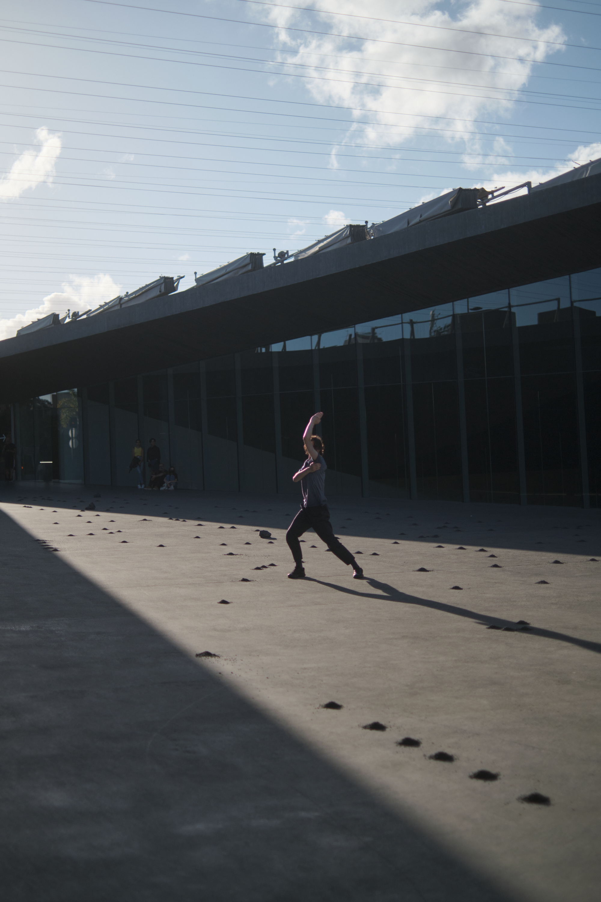 The artist of movement is a being for the gaze. It is a corporality that sets in motion the thought that looks, since the visual fact does not happen in the eyeball and it is not a concrete act, but a thinking process. The artist's body also observes the viewer, so that the eye that looks becomes the eye that is being looked at, transforming the bidirectional relationship between spectator and performer into seeing oneself see.